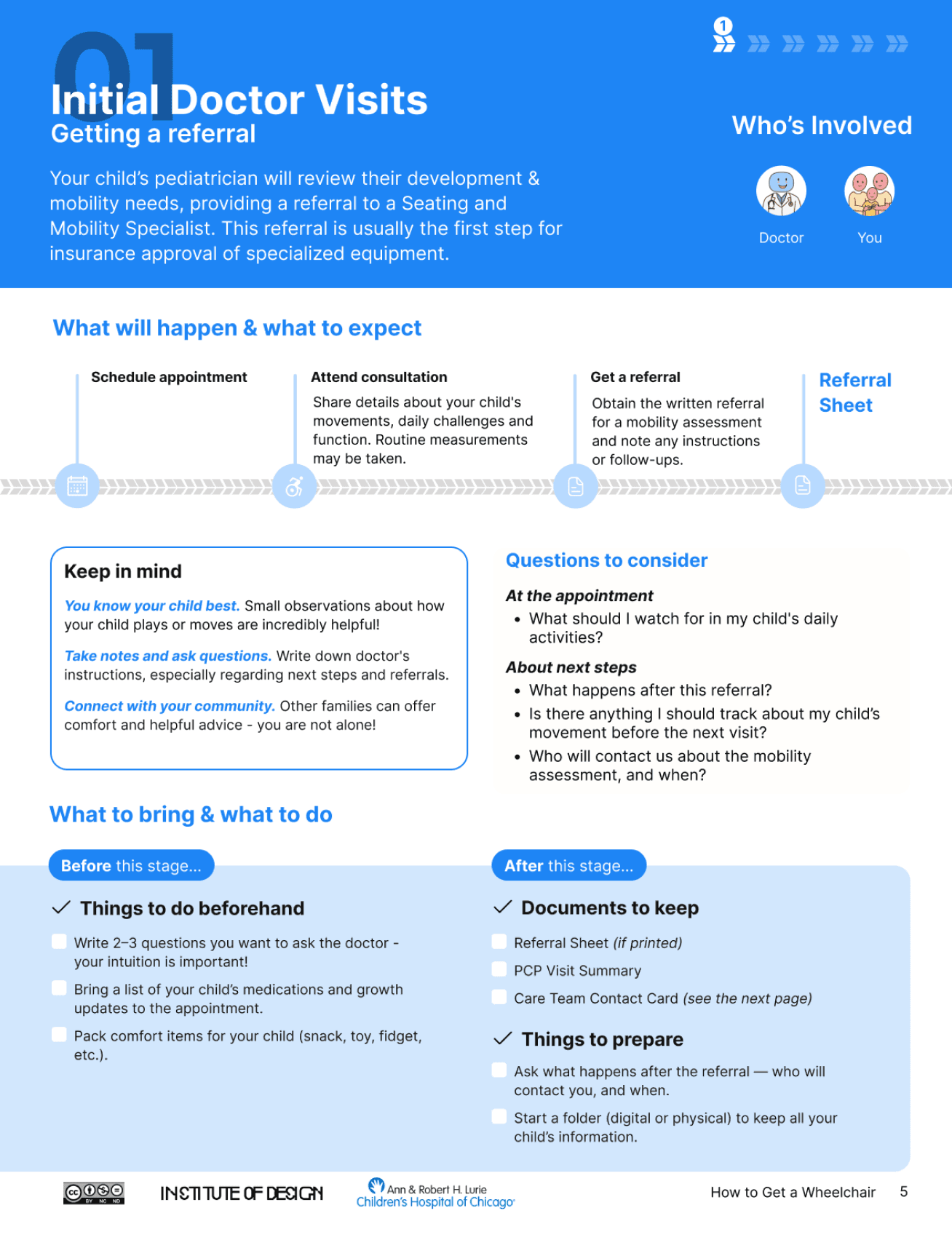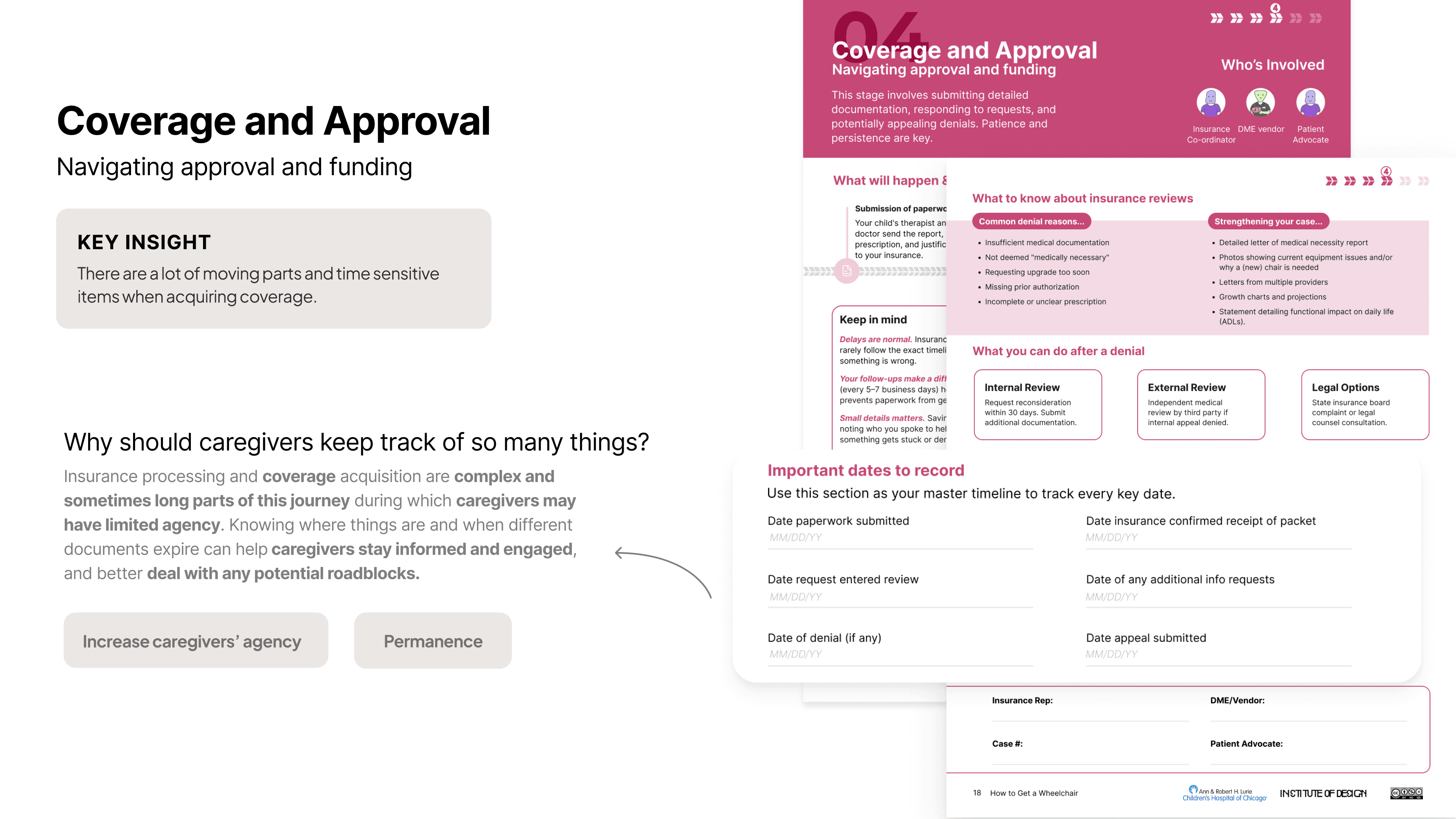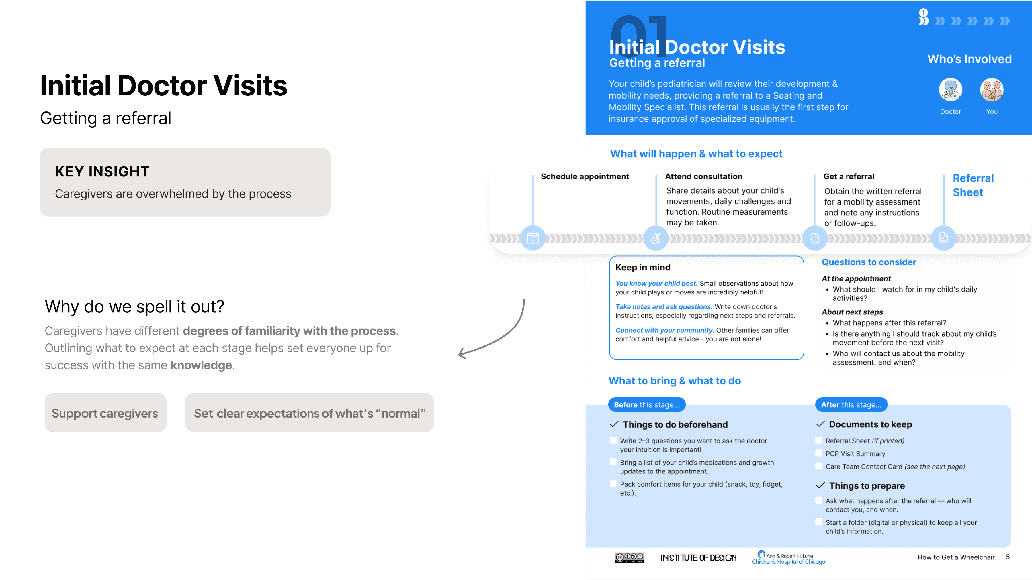 Working with Ann & Robert H. Lurie Children's Hospital of Chicago, the team focuses on illuminating this complex process through primary and secondary research and designing informational support to assist caregivers through this complex system with greater clarity and confidence.