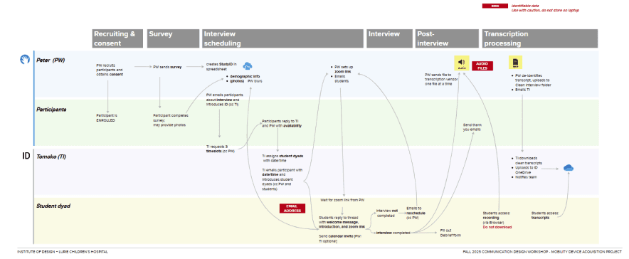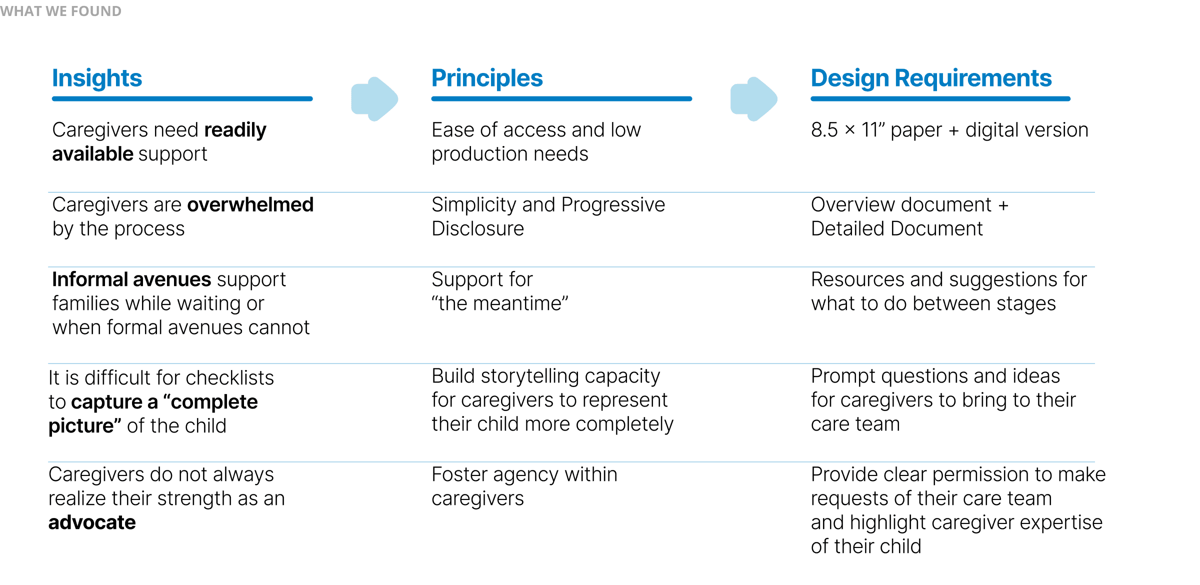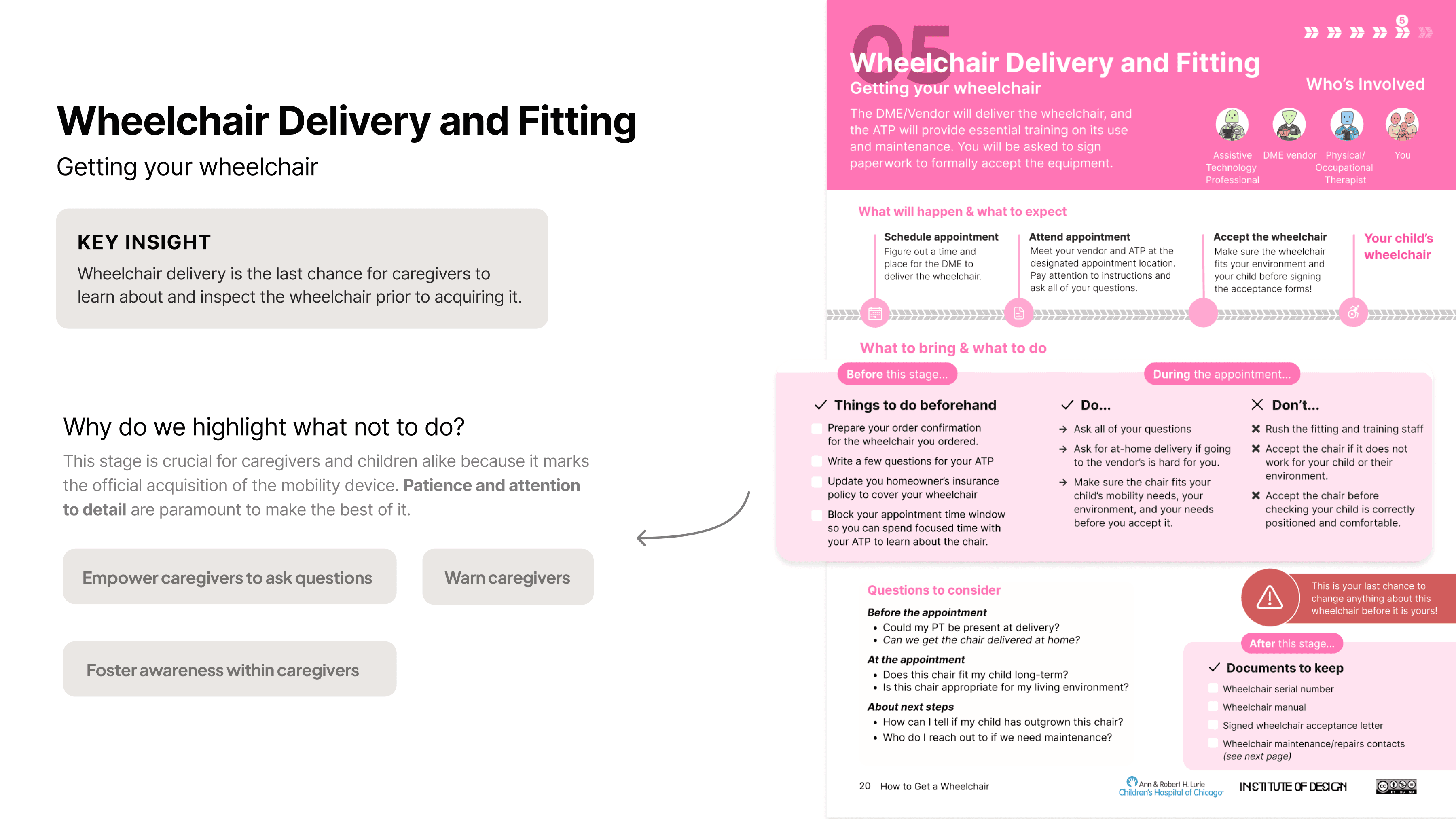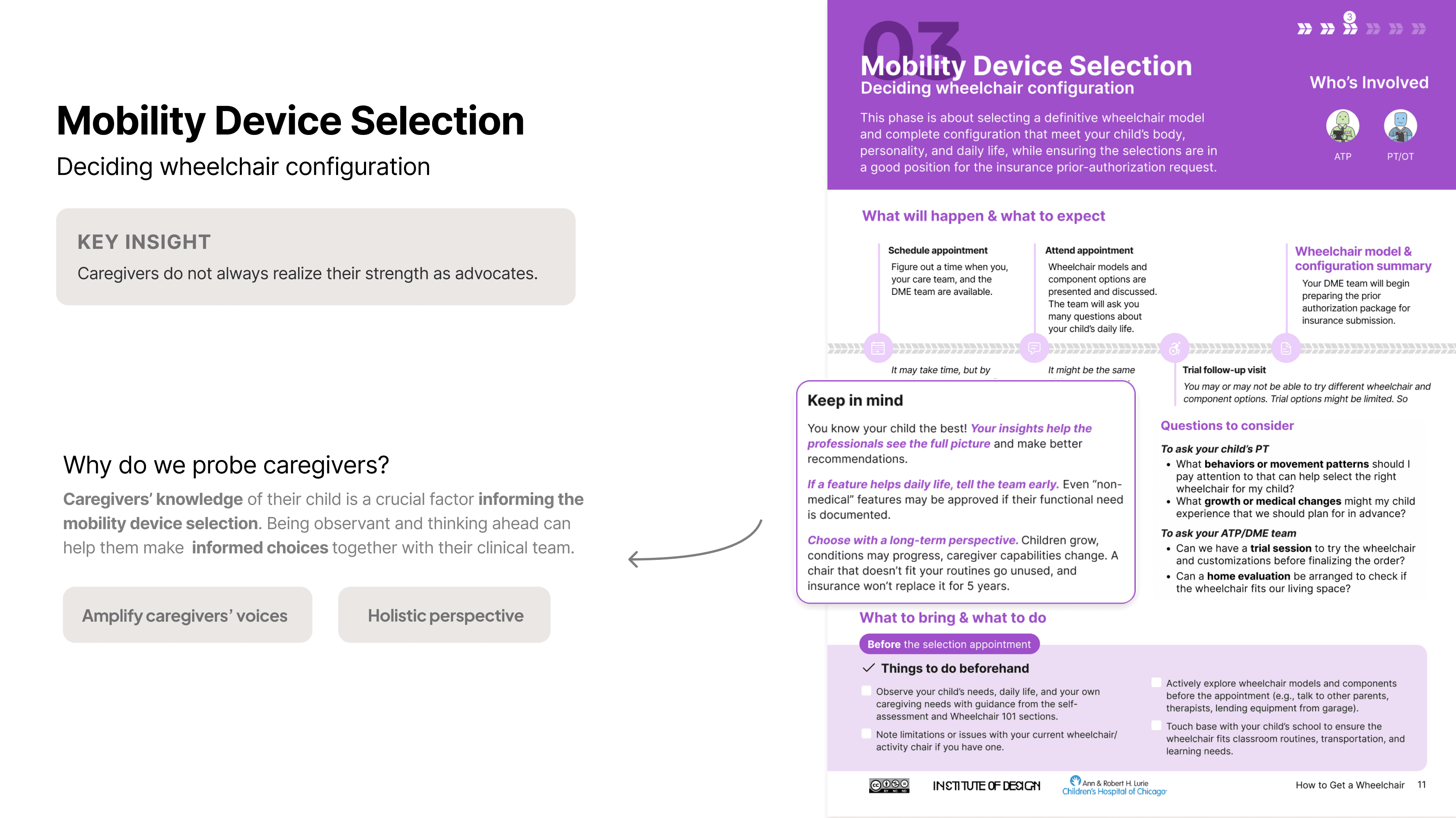 Working with Ann & Robert H. Lurie Children's Hospital of Chicago, the team focuses on illuminating this complex process through primary and secondary research and designing informational support to assist caregivers through this complex system with greater clarity and confidence.