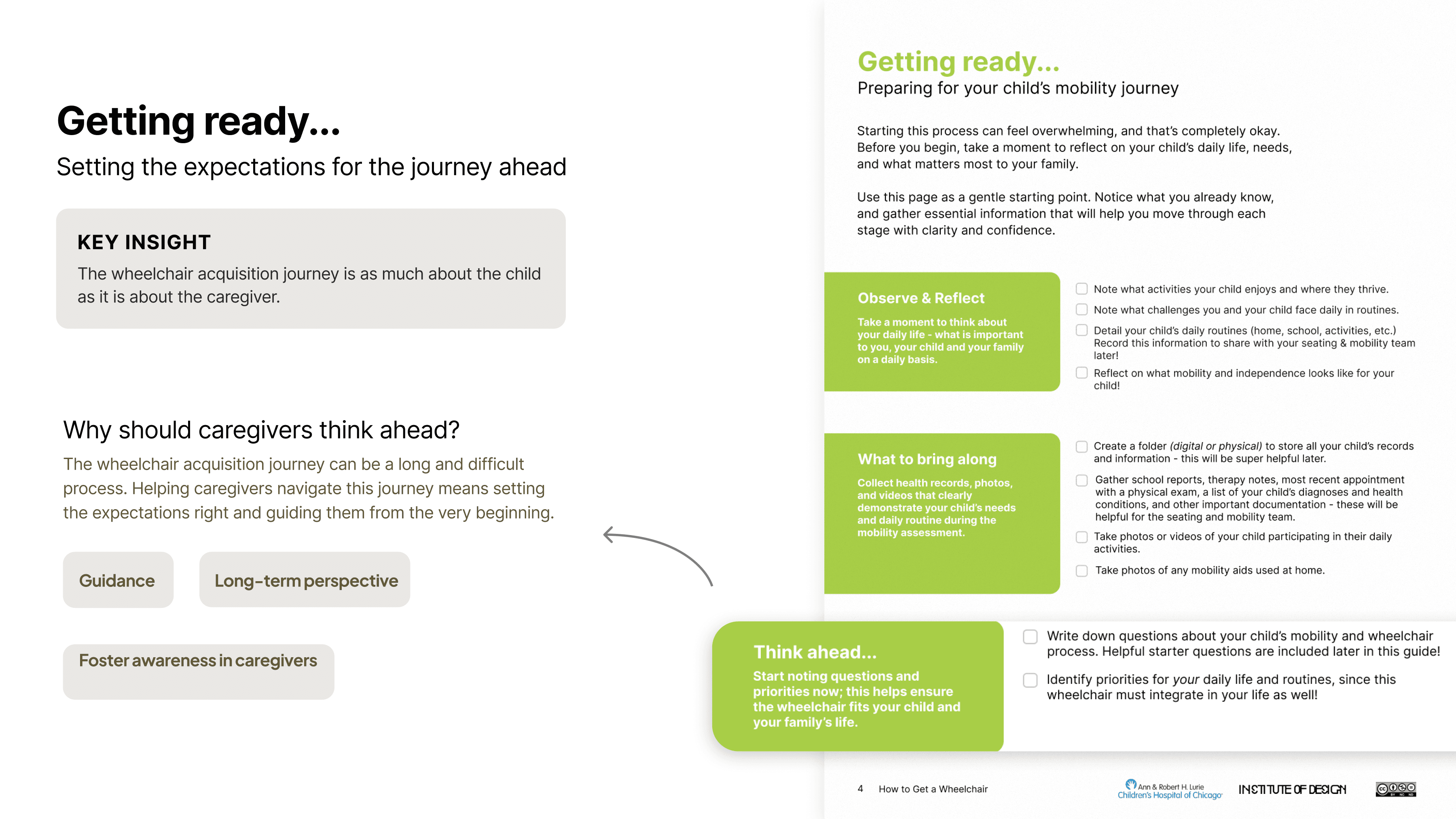 The guide includes both a high-level overview and a detailed, phase-by-phase interactive booklet, supporting caregivers across the entire wheelchair acquisition and usage lifecycle.